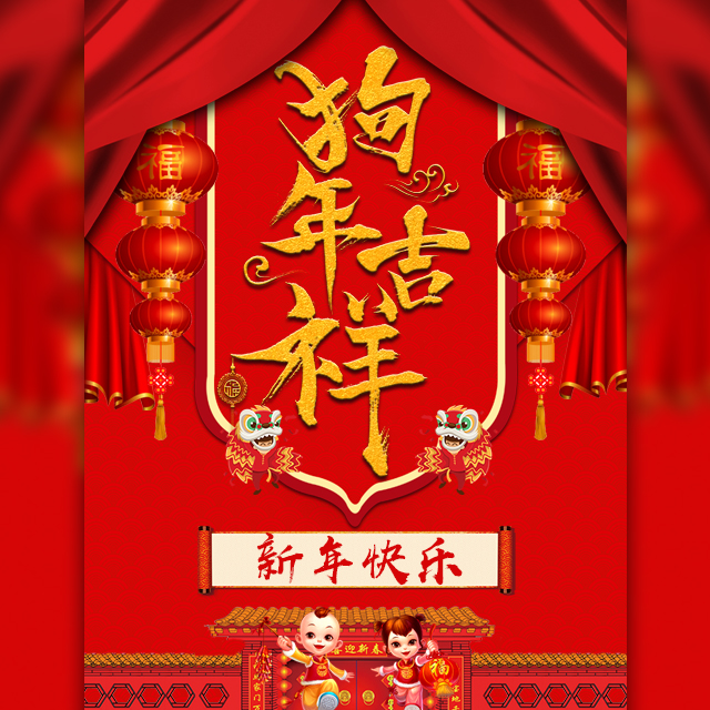 元旦新年圣誕節(jié)狗年卡通可愛紅色